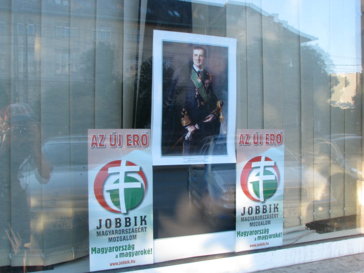 44 January 7, 2015 3264 × 2448 Portrait of interwar head of state Miklós Horthy displayed in window of Jobbik party office (6/12/2009).