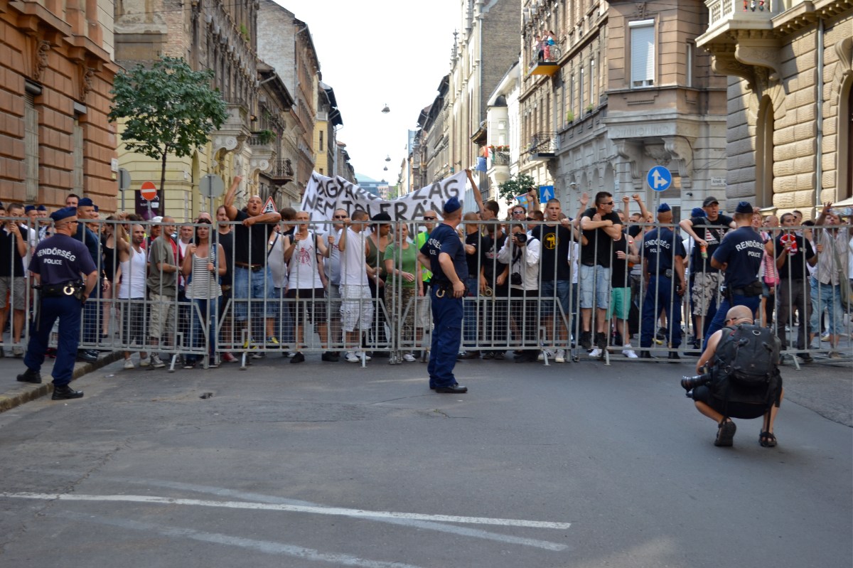 DSC_0119 July 8, 2013 4522 × 3014 in The Cardboard Men Demonstrators at police cordon on Andrássy Avenue side street.