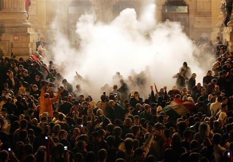 Toroczkai-led extremists lay siege to Hungarian Television headquarters on September 19, 2006.