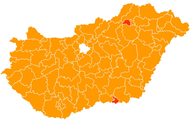 Individual electoral-district winners outside Budapest: orange=Fidesz candidates; red=Change of Government candidates.