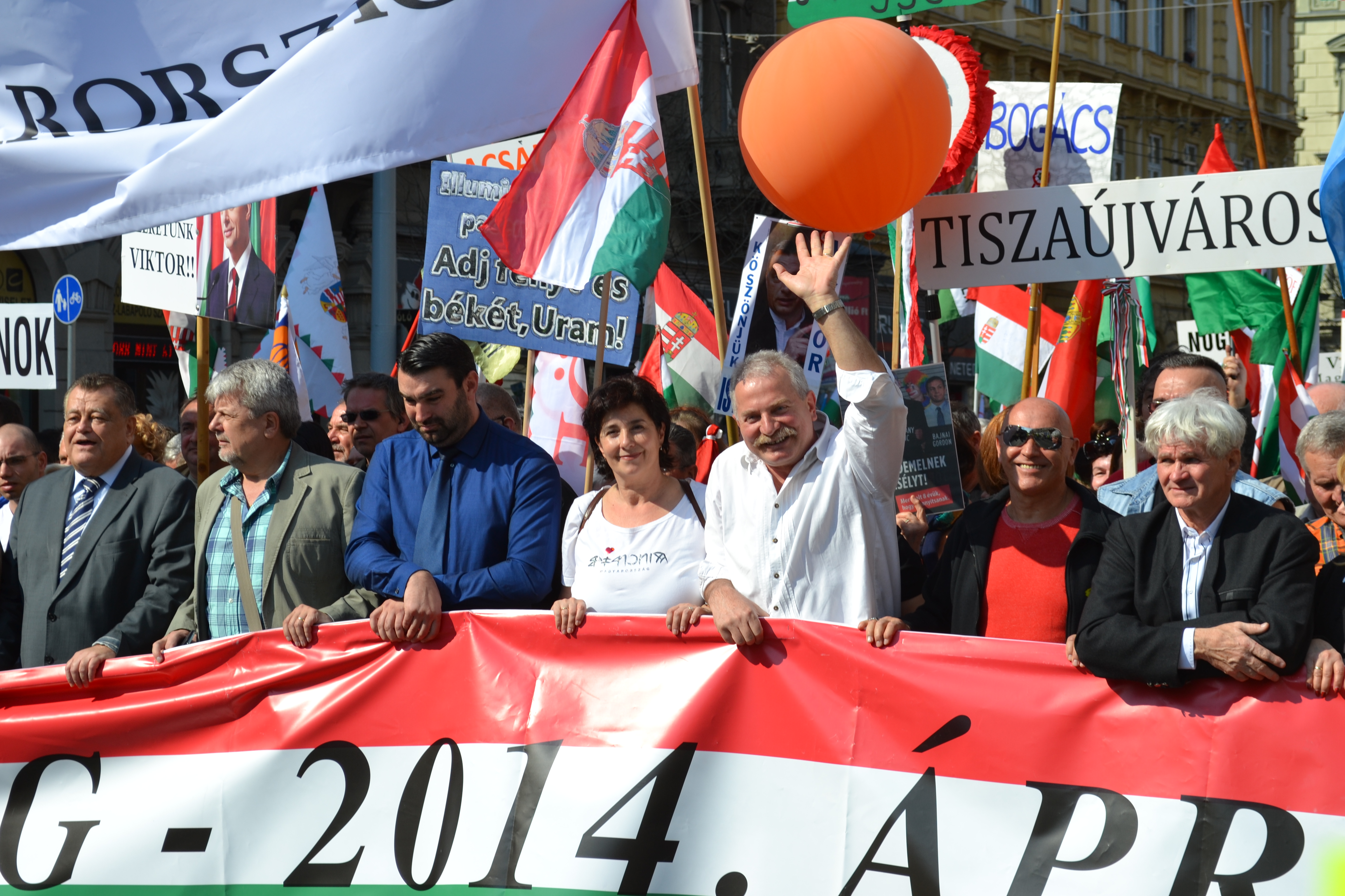 DSC_0664 March 30, 2014 4608 × 3072 in Not with a Whimper Peace March organizer András Bencsik waves for the camera.