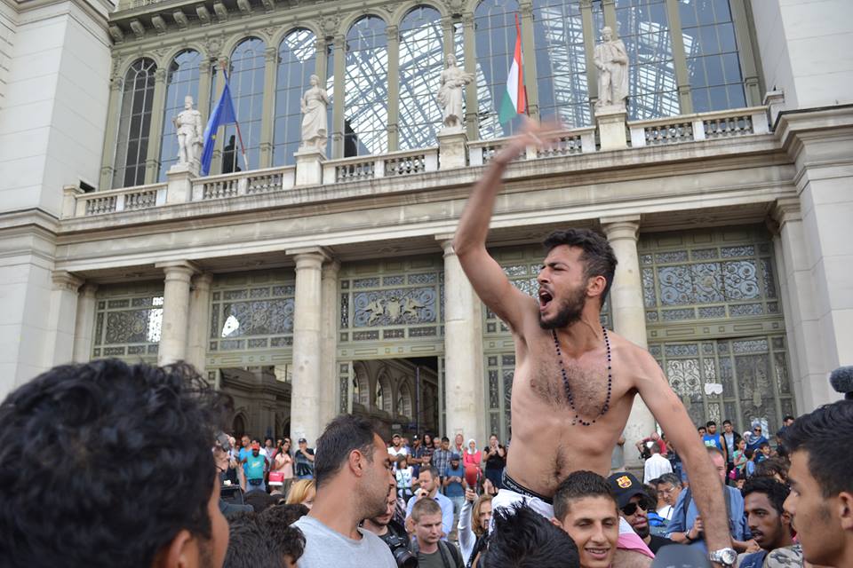 11951210_10206551394197270_3329986535611587522_n[1] September 10, 2015 960 × 640 in Hungary and the Great Migration Syrian refugees demonstrate outside the Eastern Railway Station in Budapest (photo: Orange Files).
