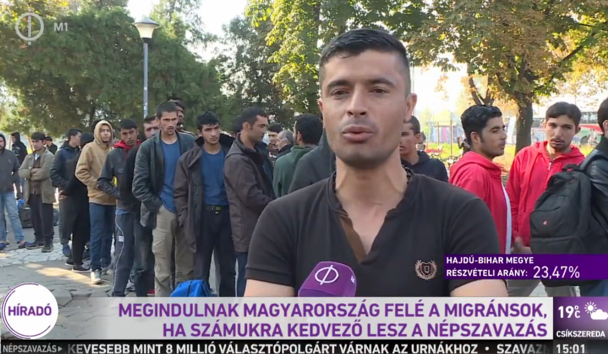 screen-shot-2016-10-05-at-11-11-32-am October 6, 2016 1242 × 724 in Referendum Homestretch on Hungarian Television (1) MIGRANTS WILL DEPART IN DIRECTION OF HUNGARY IF [OUTCOME OF] REFERENDUM IS FAVORABLE FOR THEM.