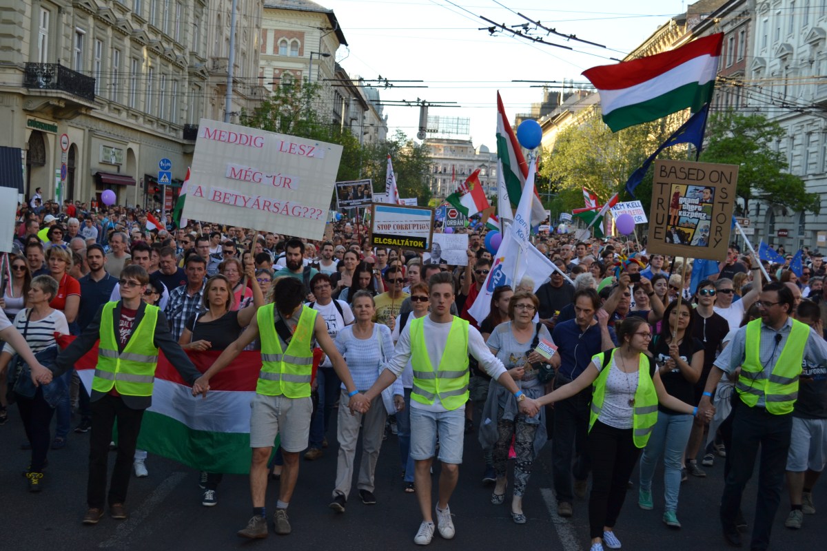 Demonstrators on Bajcsy-Zsilinszky Avenue.