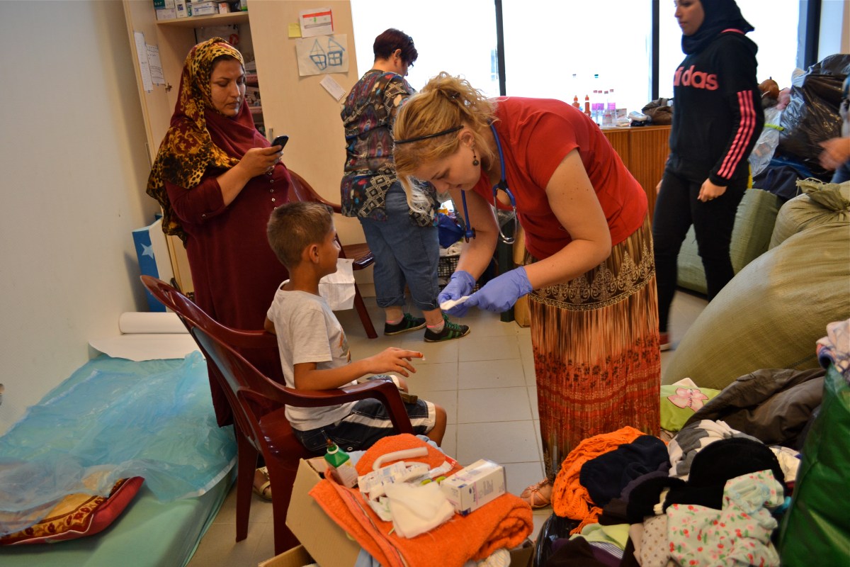 DSC_0233 August 28, 2015 4608 × 3072 Migration Aid volunteer doctor treating young refugee at the Eastern Railway Station.