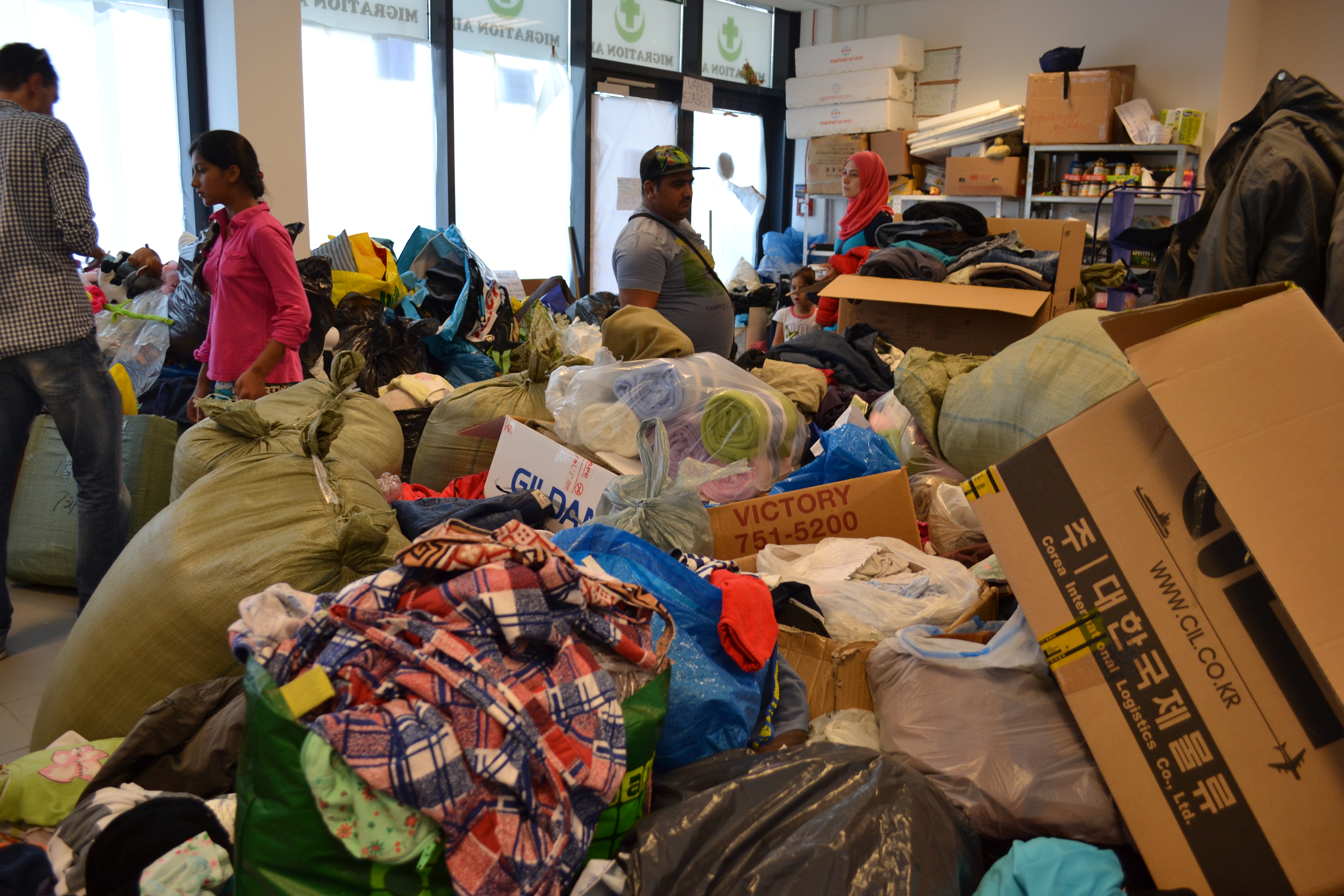 DSC_0234 August 28, 2015 4608 × 3072 Donations inside Migration Aid office at the Eastern Railway Station.