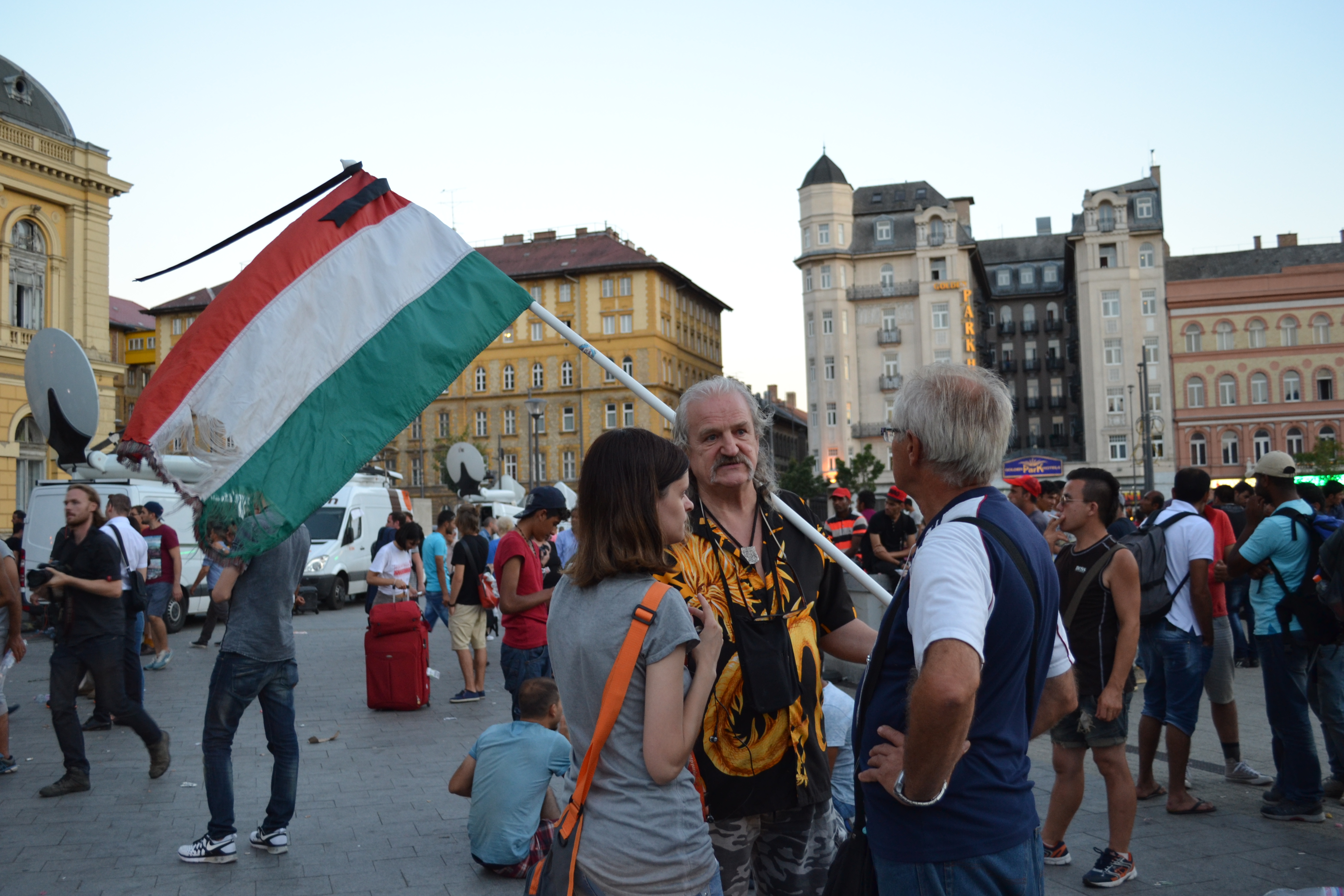 Anti-migrant demonstrators at Eastern Railway Station.