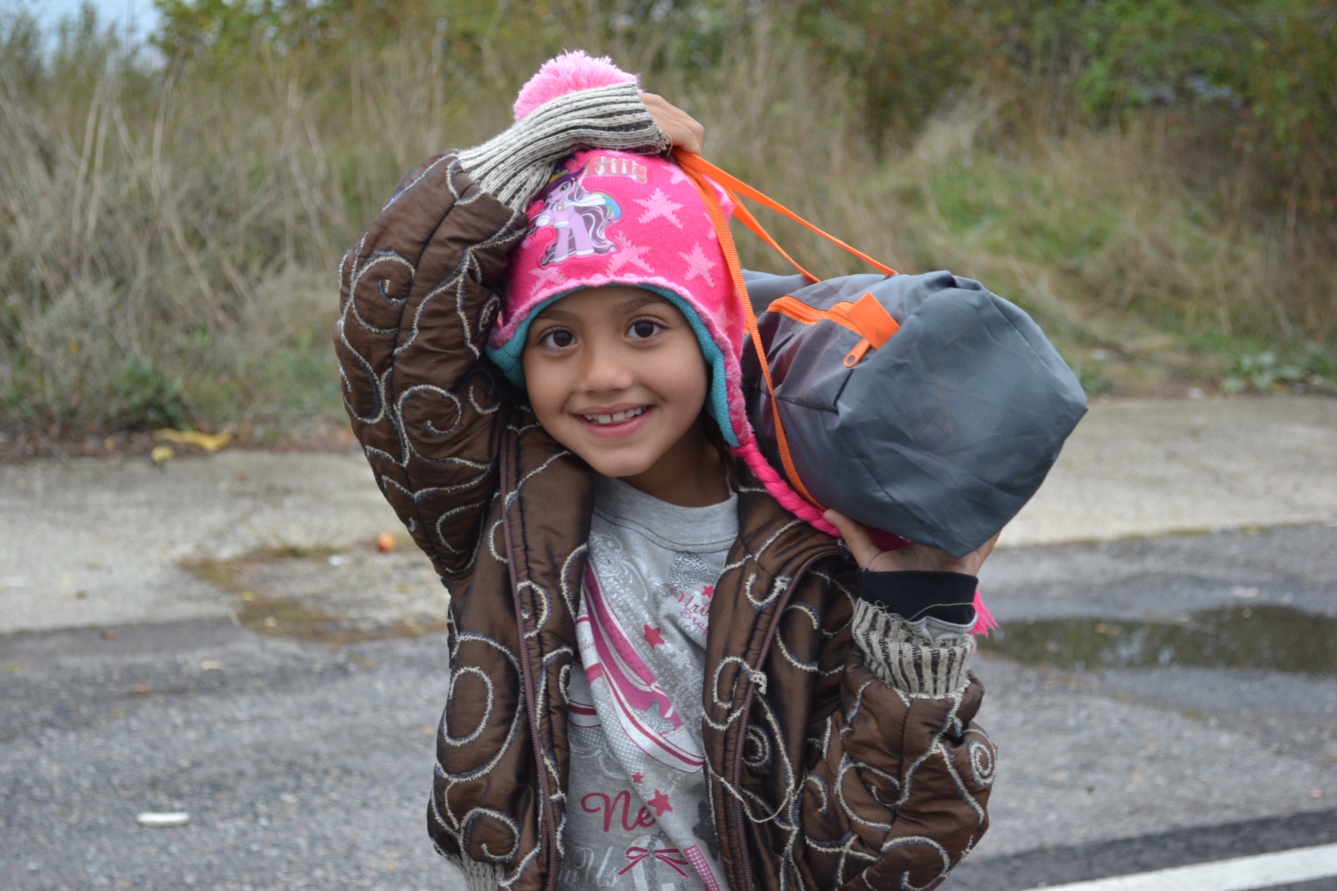 Migrant girl preparing to cross into Austria from Hungary.