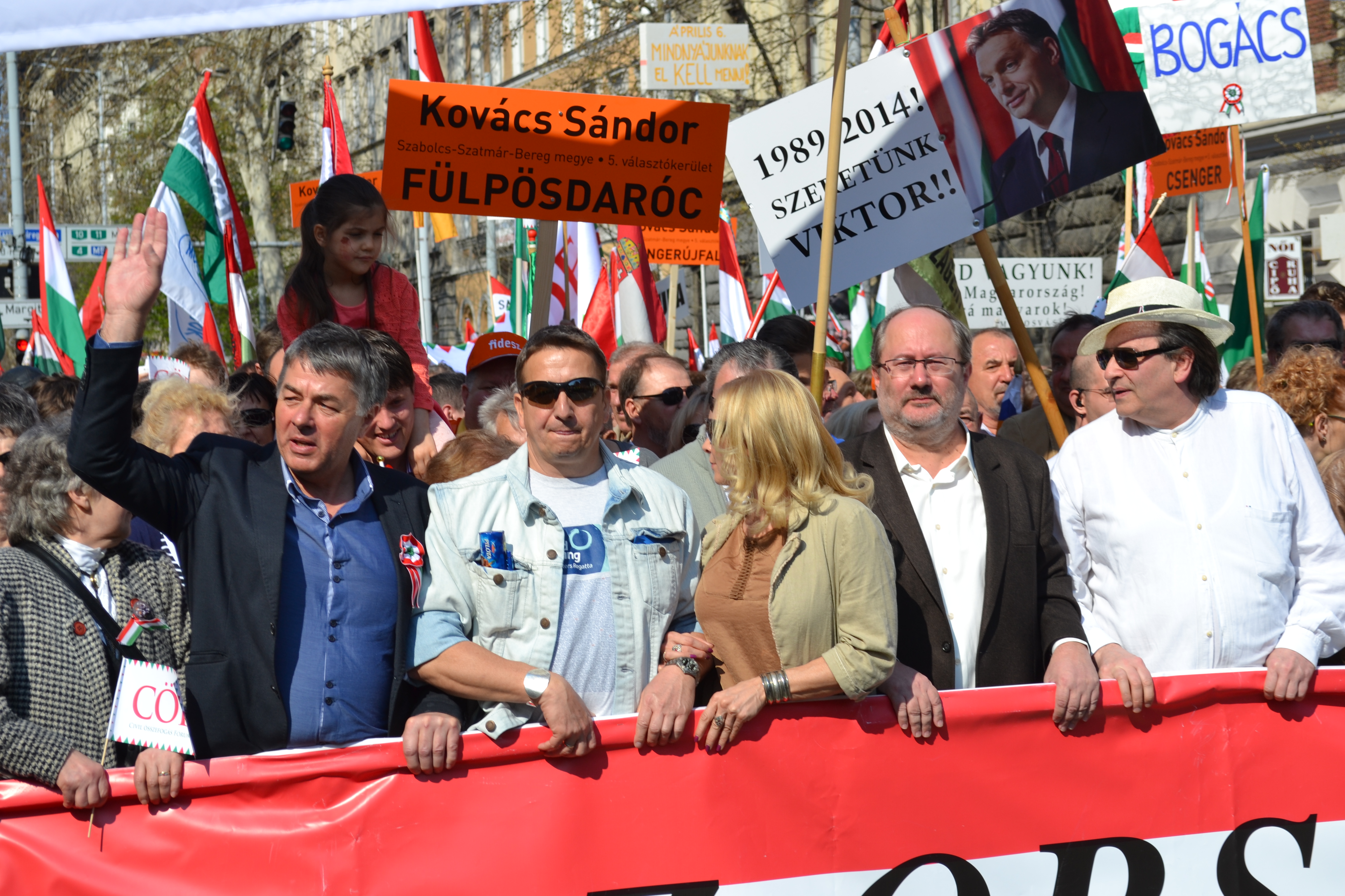 DSC_0645 March 30, 2014 4608 × 3072 Peace March organizers Zsolt Bayer (second from left) and Tamás Fricz (second from right).