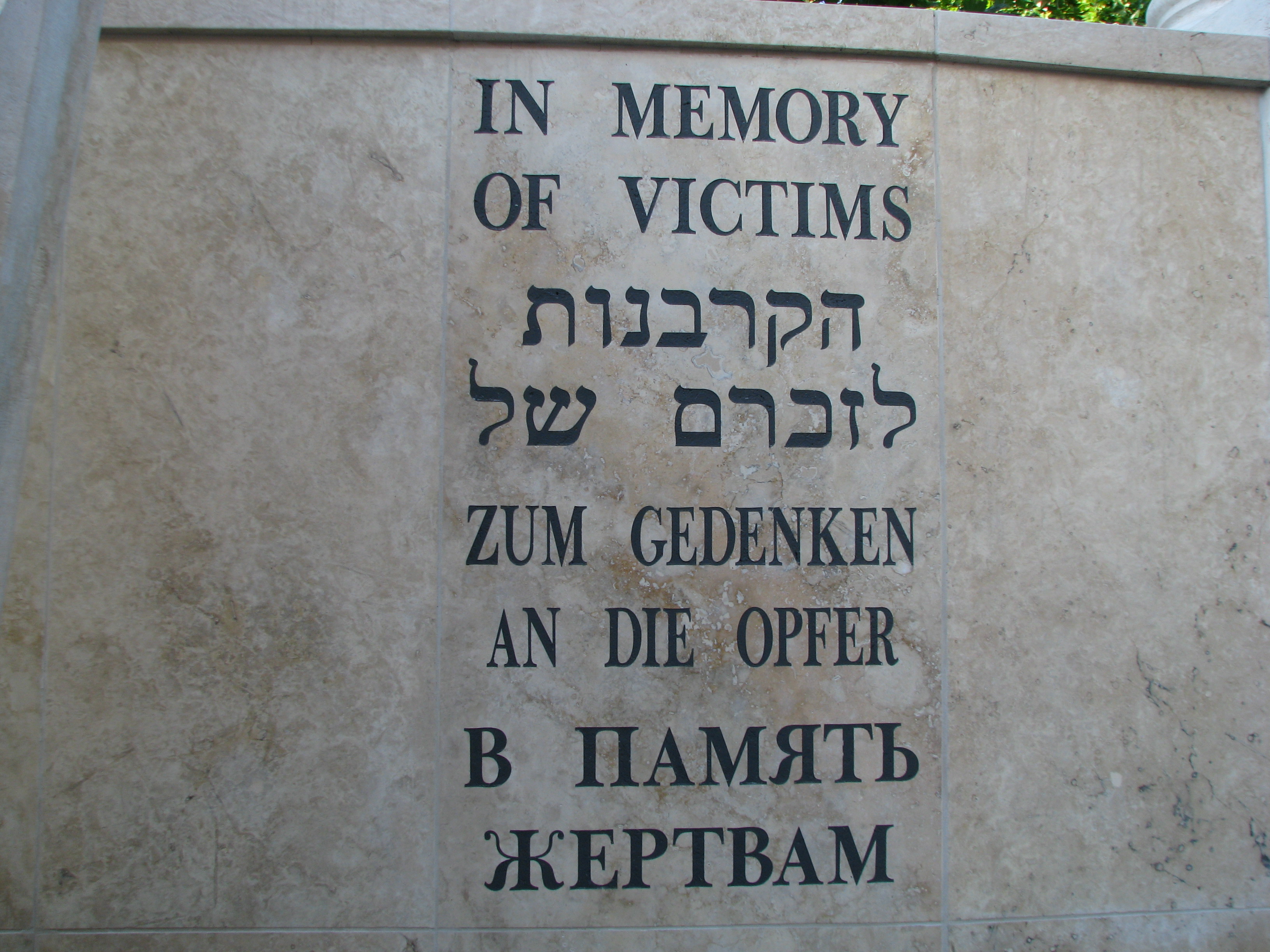 IMG_2874 July 25, 2014 3264 × 2448 Inscription on memorial missing the definite article in English and grammatically incorrect in Hebrew as well.