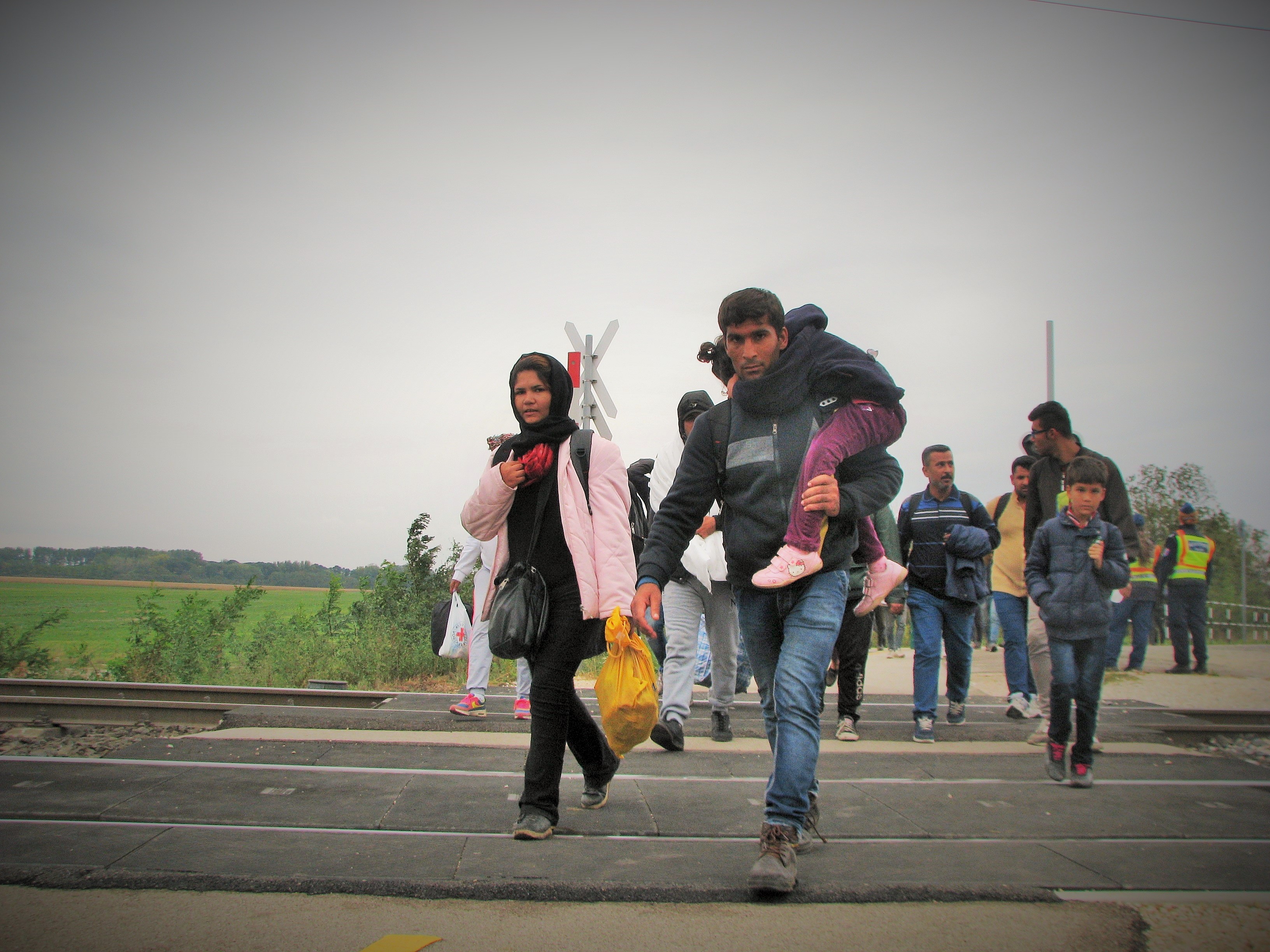 Migrants on their way to the Hungarian-Austrian border.