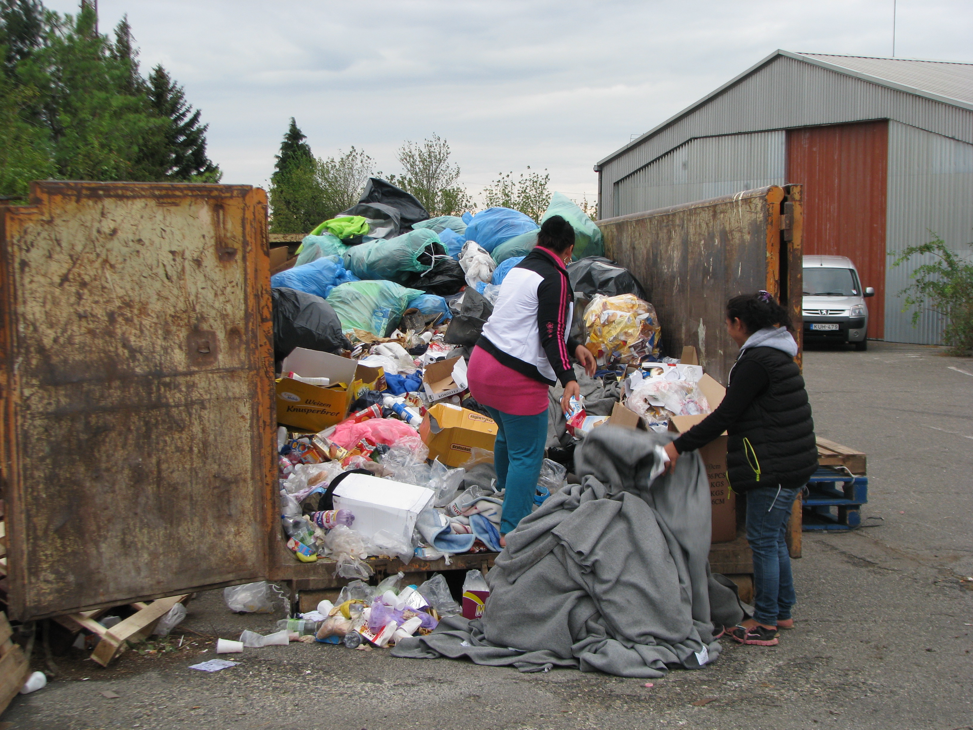 IMG_3113 September 28, 2015 3264 × 2448 Gypsies remove discarded UNHCR blankets from dumpster near border.