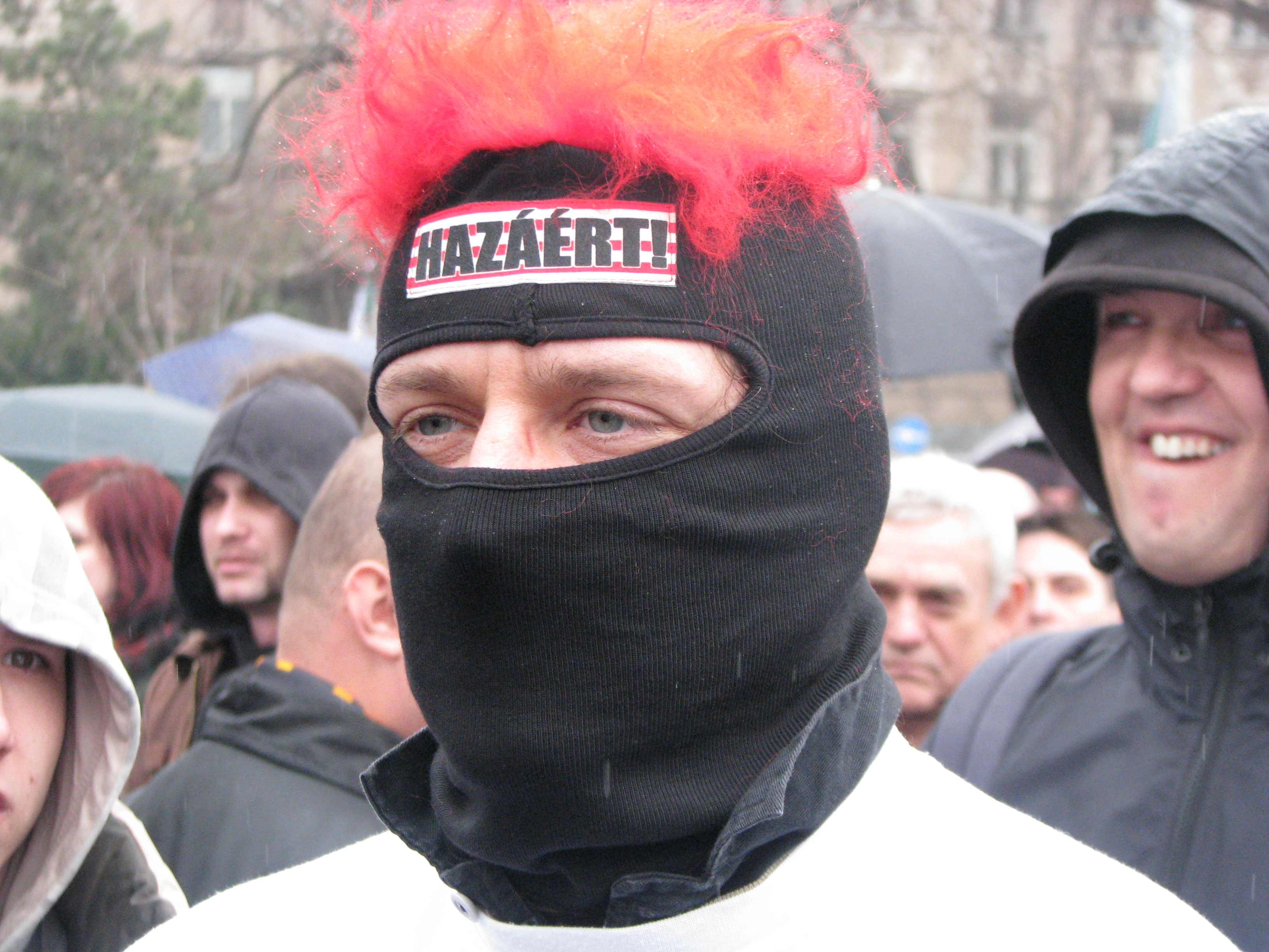 17 January 7, 2015 3264 × 2448 György Budaházy in “For the Homeland!” mask during protest at Budapest Mayor Gábor Demszky’s annual March 15 speech (3/15/2008).