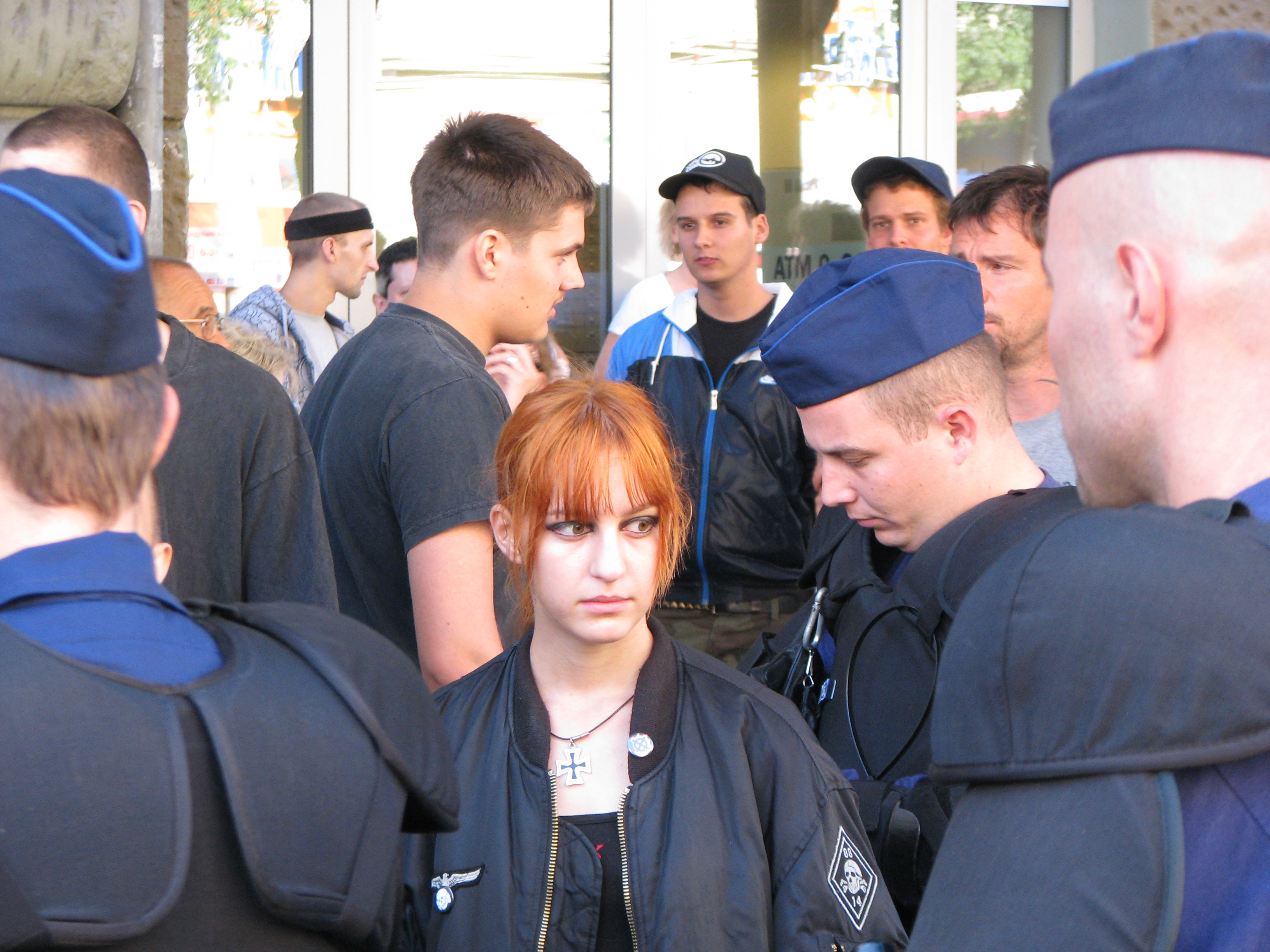 20 January 7, 2015 3264 × 2448 Cops conduct an identity check on an anti-gay demonstrator during the annual Budapest Pride parade (9/5/2009).