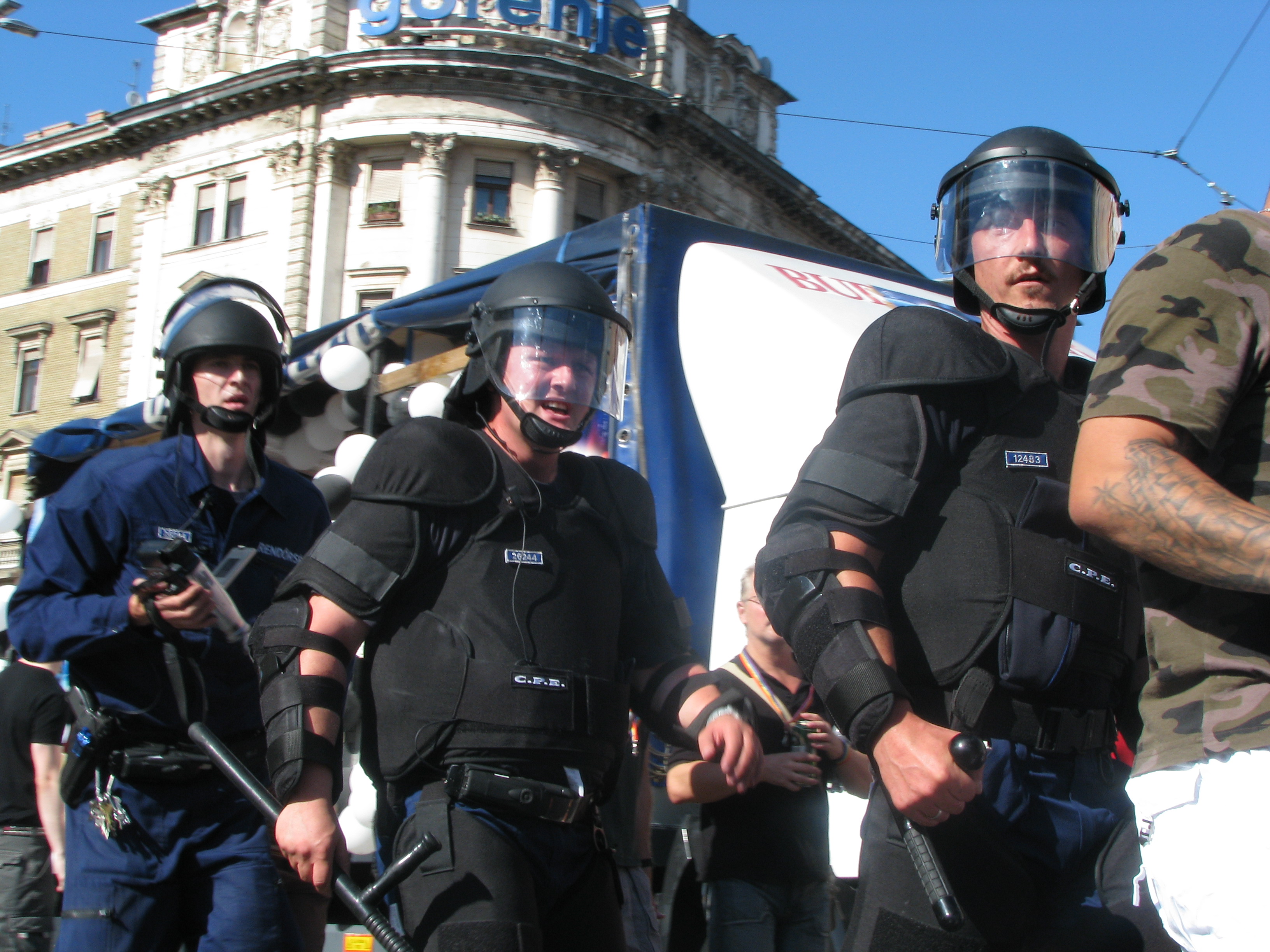 8 January 7, 2015 3264 × 2448 Riot cops protect participants in Budapest Pride parade from anti-gay demonstrators (7/72007).