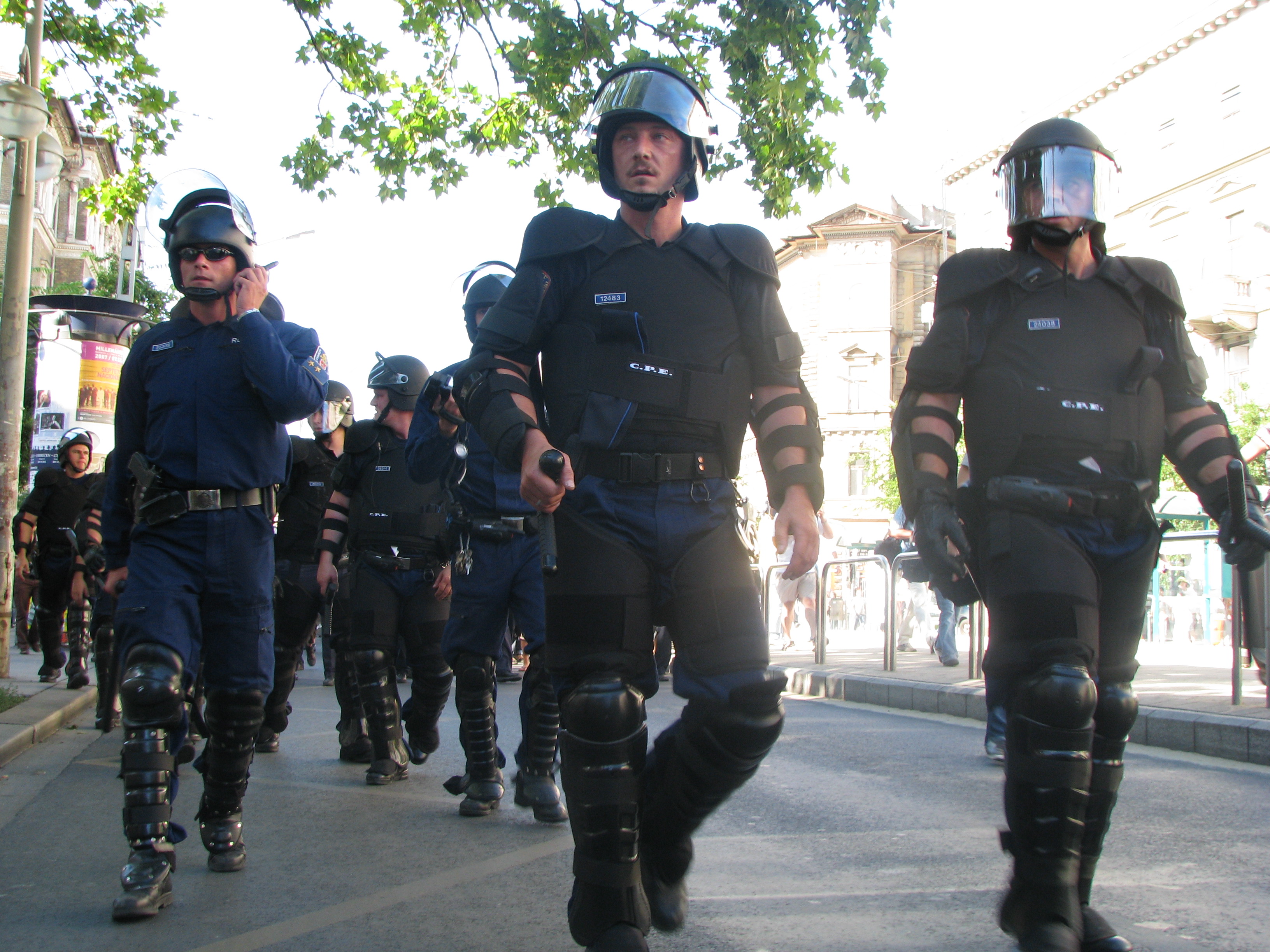 9 January 7, 2015 3264 × 2448 Riot cops protect participants in Budapest Pride parade from anti-gay demonstrators (7/7 2007).