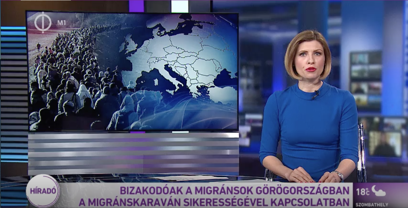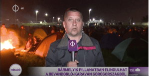 Newscaster (1:59): According to the estimate of our reporter, more than 2,000 people had gathered by the afternoon. If the leaders feel that they have reached the critical mass, then they will immediately depart toward the interior of Europe. Several people both here at home and abroad declared in vain over the past few days that the information regarding the caravan was fake news. Today it became clear that it isn’t [fake news]. Word is spreading like wildfire among the immigrants that it is worthwhile for them to join [the caravan].