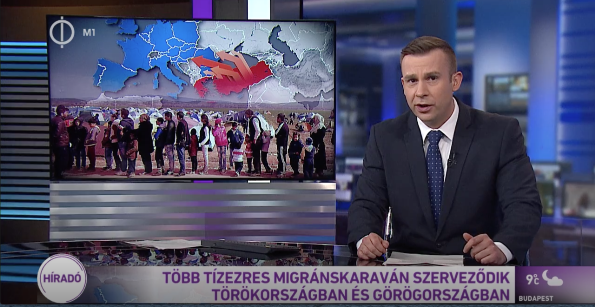 Newscaster (0:47): A migrant caravan with several tens of thousands [of people] is being organized in Turkey and Greece. The goal is for them to depart for Western Europe, the Migration Research Institute warns. The caravan is being organized via social media. They call this initiative the Caravan of Hope and write that its success depends on Allah. The trip cutting through Europe may be especially attractive for immigrants because according to the summons they can join it at no cost and humanitarian organizations will also help them. According to the specialist who talked to M1, mass migration started in 2015 after a similar initiative.