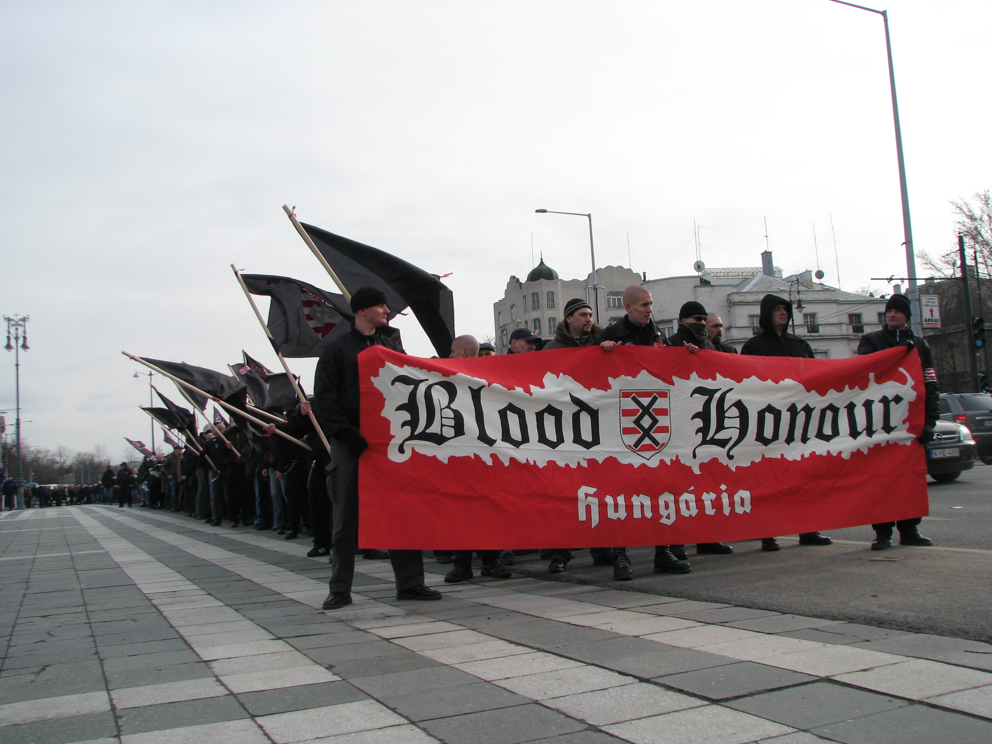 51 January 7, 2015 3264 × 2448 Members of the Hungarian chapter of Blood and Honor at Hungarist rally on Heroes’ Square (2/14/2009).