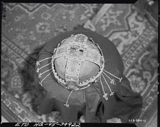 In March 1945, Crown Guards took the Holy Crown of Hungary to Nazi Germany and buried it in a gas can near the village of Mattsee, located about 20 kilometers northeast of Salzburg in former Austria, in order to prevent the Red Army from gaining possession of it.