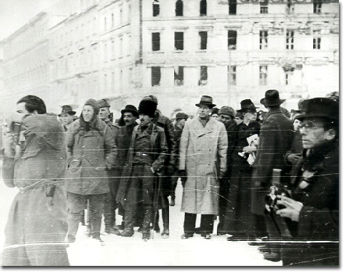The first of these death sentences were carried out during the Siege of Budapest on February 4, 1945, when Corporal Sándor Szívos and Sergeant Péter Rotyis were hanged from lampposts in a grisly public execution before a large crowd of spectators on the Oktogon square in the center city.