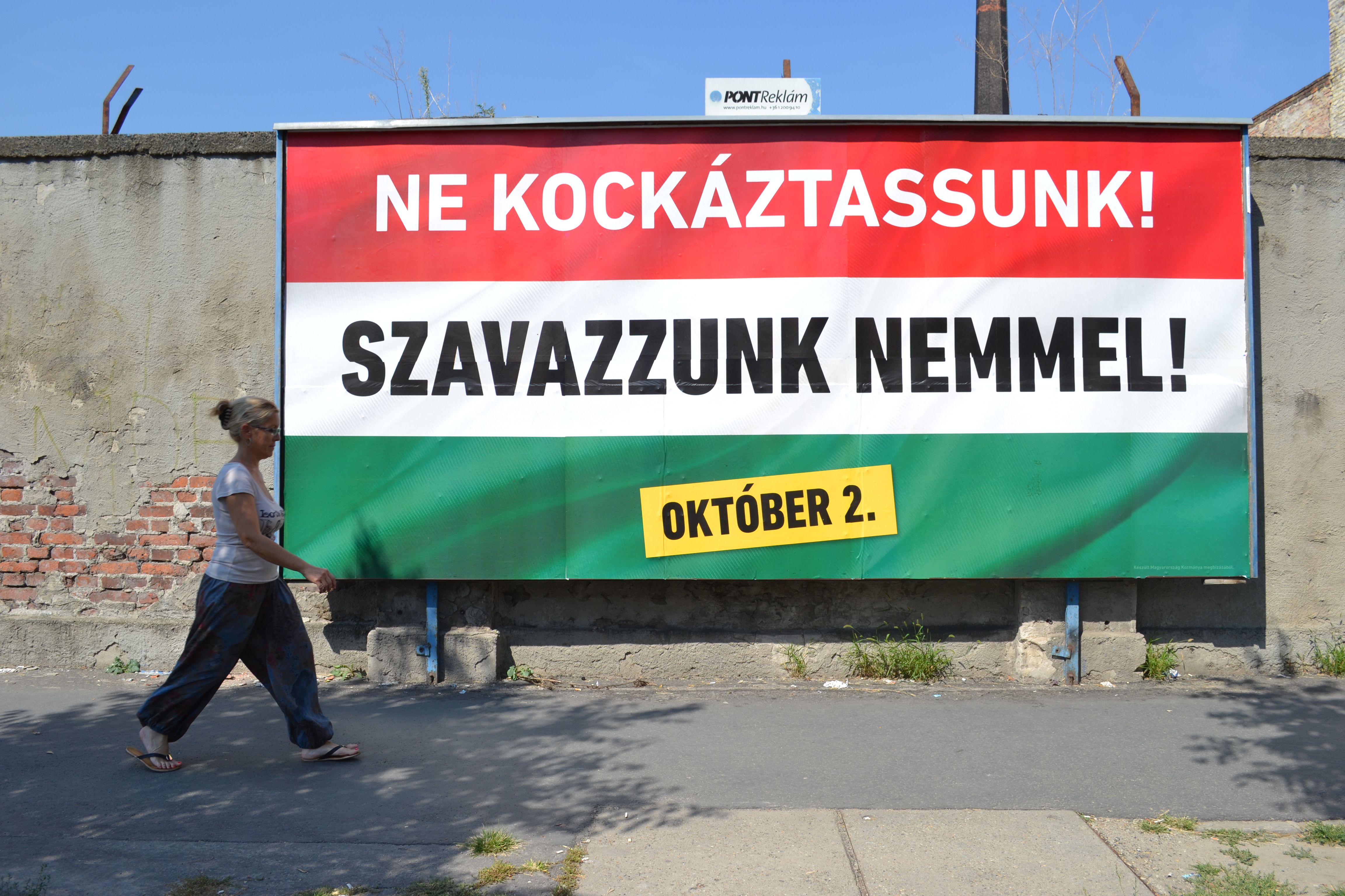 “Let’s Not Take a Risk! Vote No! October 2”: Orbán government anti-quota referendum sign in Budapest (photo: Orange Files).