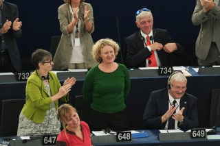 MEP Judith Sargentini receives ovation following the European Parliament’s adoption of her report on “the situation in Hungary” (photo: AFP).